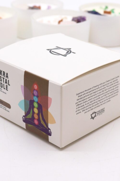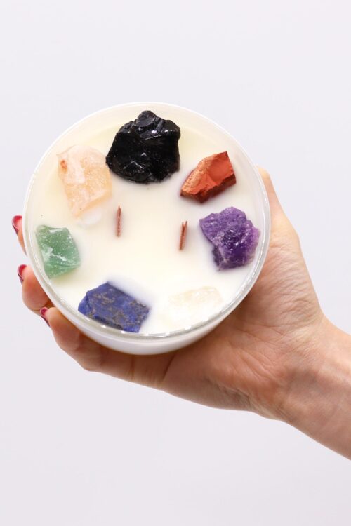 Harmonické spojenie drahokamov a vôní, ktoré rezonujú so všetkými siedmimi čakrami. Táto sviečka presahuje osvetlenie; je to symfónia energie a rovnováhy. Sedem čakier: Predstavuje rovnováhu, vyrovnanie a tok energie v celom tele. Vôňa: Naplnená éterickou vôňou „Moon Beams“, vôňou, ktorá vyvoláva pokoj a spojenie s vyššími sférami. Vrchné tóny: červený grapefruit, citrón, brusnice, Stredné tóny: červená šalvia, levanduľa, červený šafran, Spodné tóny: červené cédrové drevo, horká ambra, kávové zrná. Polodrahokamy: zdobené siedmimi rôznymi drahokamami, z ktorých každý predstavuje jednu zo siedmich čakier, podporuje rovnováhu a harmóniu v celom tele. Zapáľte túto sviečku, aby ste vytvorili atmosféru rovnováhy a vyrovnania. Dovoľte mystickej vôni „Mesačných lúčov“, aby upokojila vaše zmysly a spojila vás s vyššími sférami, zatiaľ čo energia siedmich drahokamov rezonuje s celým vašim čakrovým systémom a vyrovnáva ho.