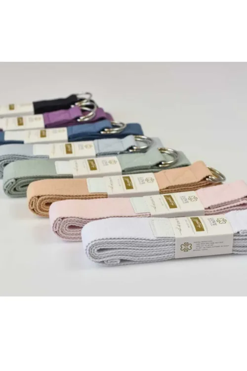 • Bavlnený opasok na jogu Love Generation je vyrobený z pevnej bavlny a má kovovú pracku. Vďaka tomu je pás prakticky nezničiteľný a môže naň pôsobiť veľkou silou.