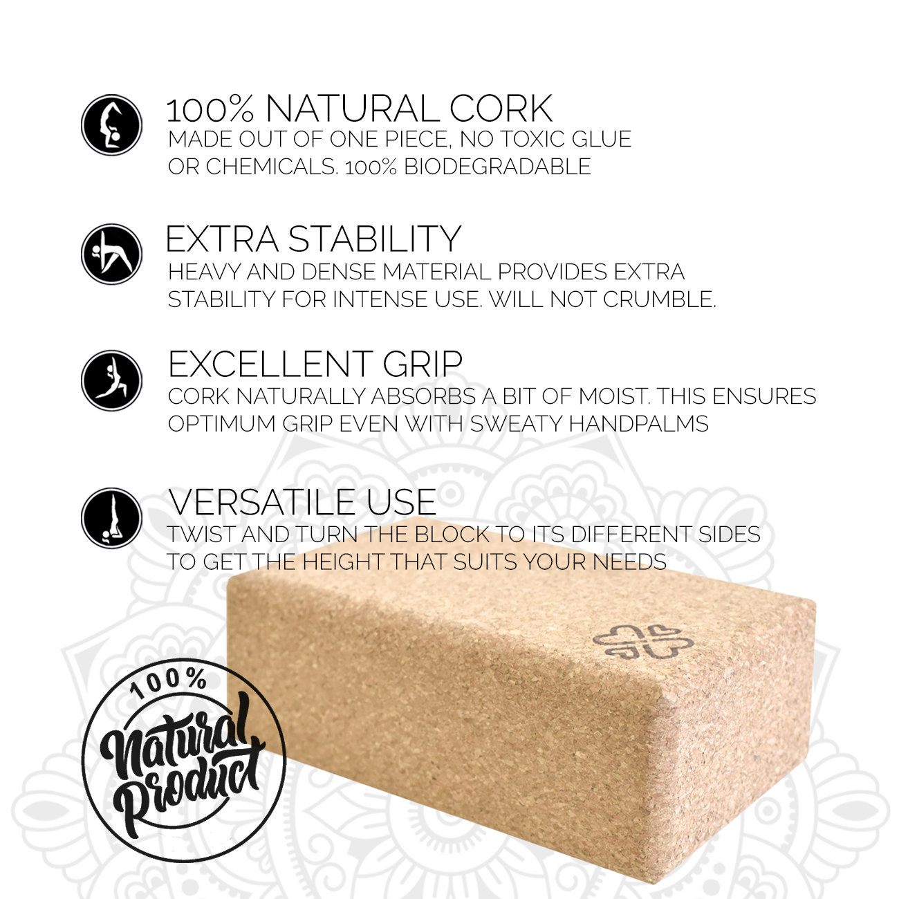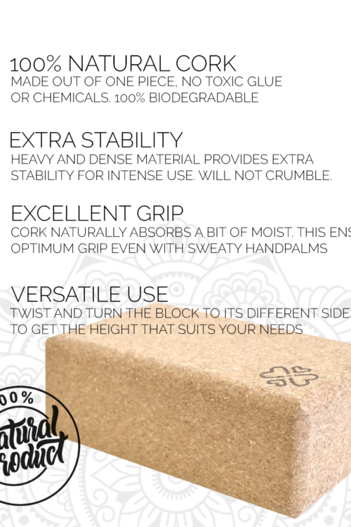 Optimálna stabilita: Vďaka mierne vyššej hmotnosti ponúka korkový blok na jogu maximálnu stabilitu a pevnosť aj v tých najnáročnejších pózach.