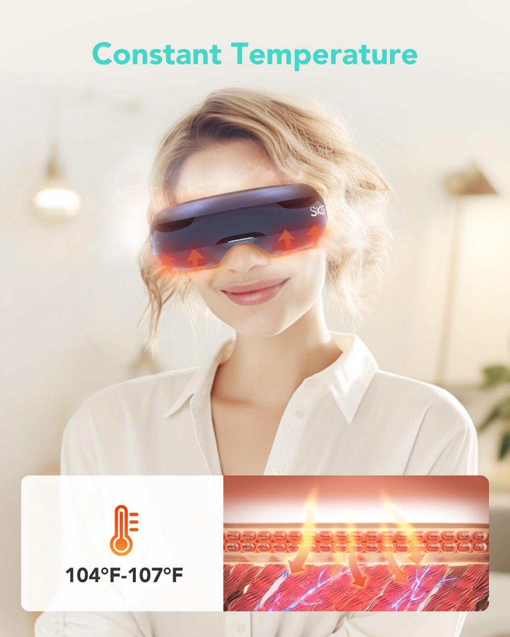 - Účinne znižuje napätie a opuchy . Masážny prístroj na oči udržiava stálu teplotu 40-41 stupňov Celzia.