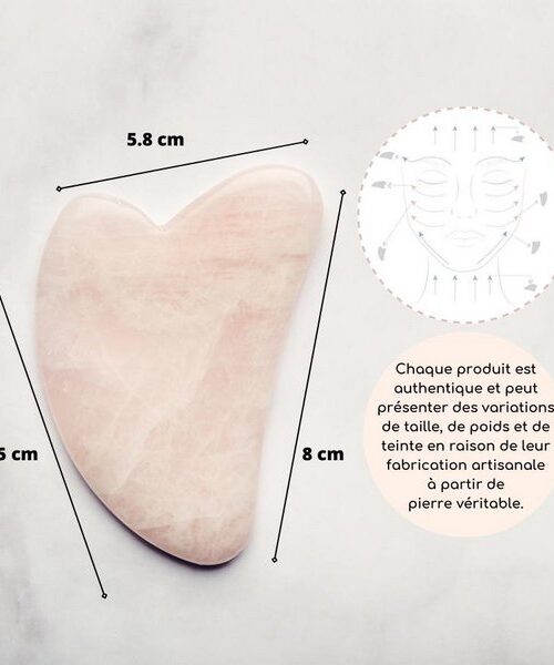 Je navrhnutý pre každodenné používanie doma alebo na cestách. Guasha z ruženínového kameňa nielenže stimuluje tvárové svaly, ale aj zlepšuje prietok krvi a lymfy a posilňuje regeneráciu pokožky. Tieto vlastnosti z nej robia nenahraditeľný kúsok pre vašu starostlivosť o pleť.