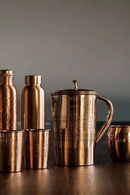 Všetky medené nádoby v našej ponuke boli ručne vyrobené v Indii, kde je tradícia ich výroby už po stáročia. Výrobky z pravej medi rozlíšite medzi pravou verziu a zmiešanou verziou s inými kovmi podľa tvrdosti. Čistá meď je veľmi mäkký materiál. Čistá meď je najlepšou voľbou.
